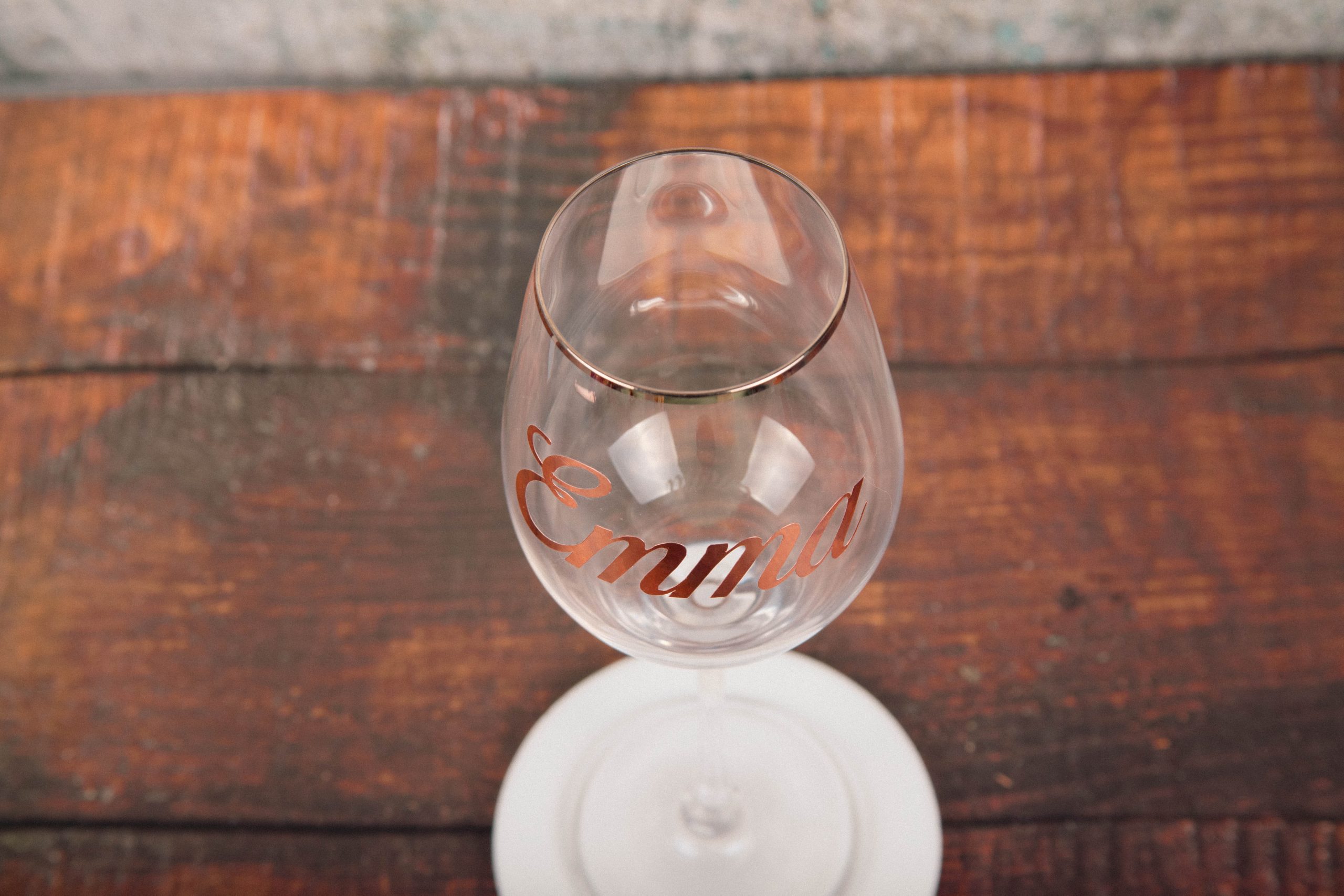 Indulge in the finer things with this personalized wine glass, featuring a radiant platinum trim. Elevate your drinking experience and make every pour feel like a moment of pure luxury.